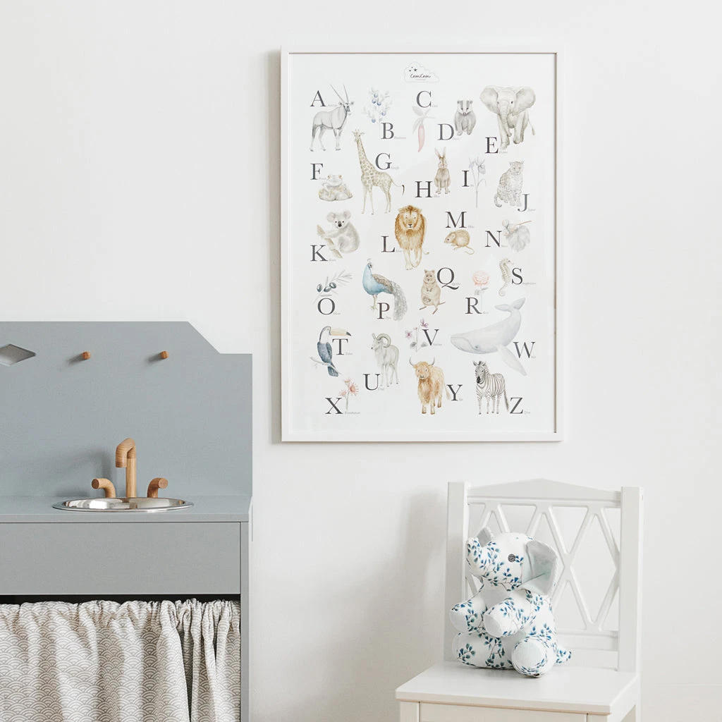 The Alphabet poster allows your child to get acquainted with the ABC in a homey setting and offers the perfect opportunity for contemplative and creative moments together.
