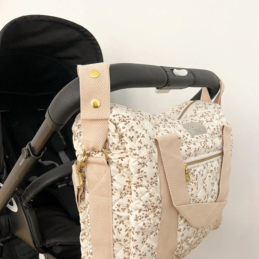 Our popular Changing Bag with elegant quilting and water repellent coating both outside and inside for extra protection and longevity.