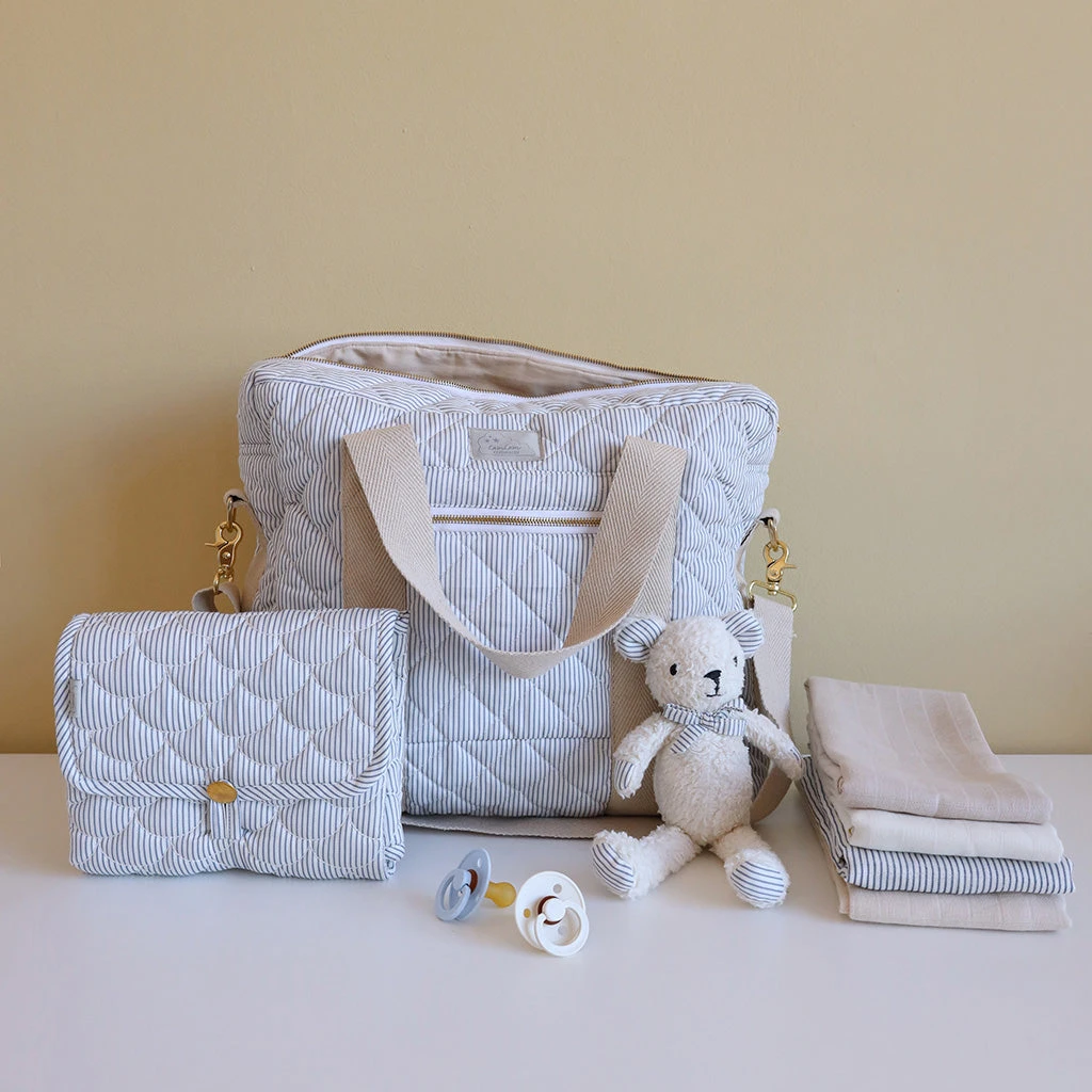 A cute and practical changing mat with a beautiful wave quilt pattern – the mat is perfect for changing situations on the go.