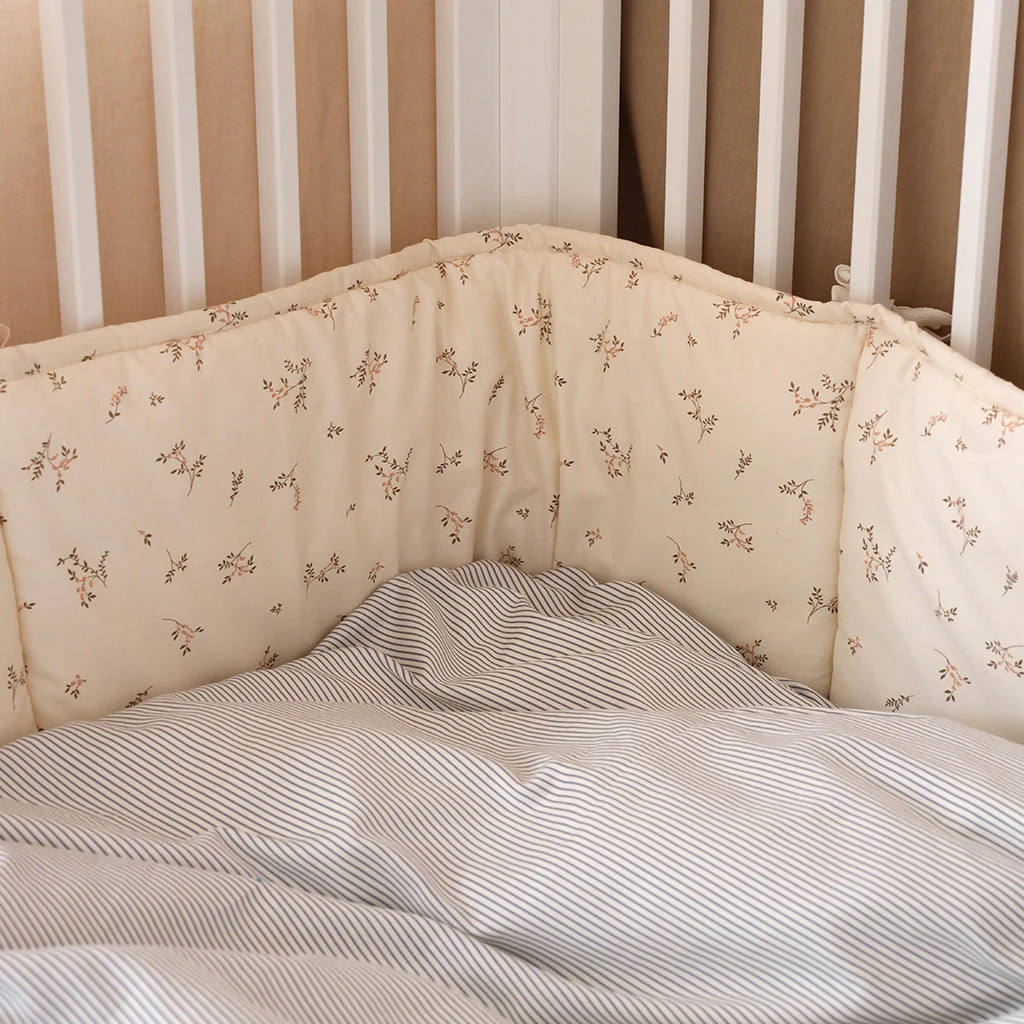 Soft, organic Cot bumper/cot bumper with soft filling inside to provide comfort, safety and calmness for your baby while sleeping. The cot bumper fits a standard baby cot of 120x60cm.