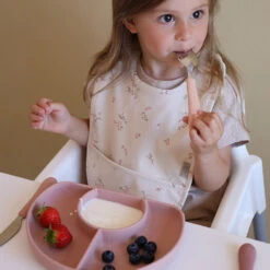 Set of two pretty and practical Silicone Spoons designed with a beautiful flower embellishment allowing the little one(s) to dine in style.