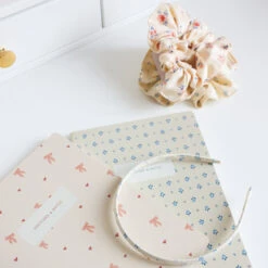 This set features two charming designs: one with the adorable Augusta print and the other with the sophisticated Lierre design. These scrunchies are soft on hair, ensuring a secure yet gentle hold.