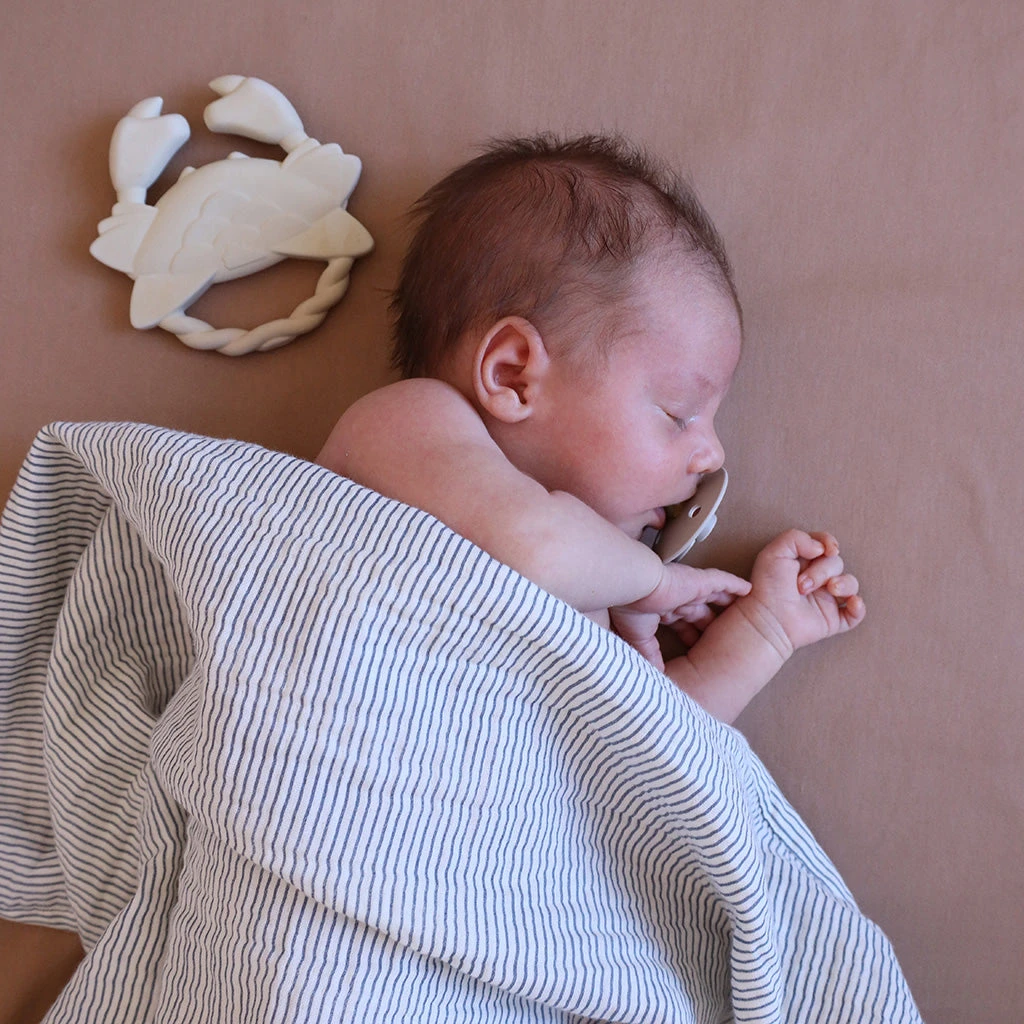 Soft and breathable blanket made with 4-layers of breathable, organic GOTS-certified cotton.
