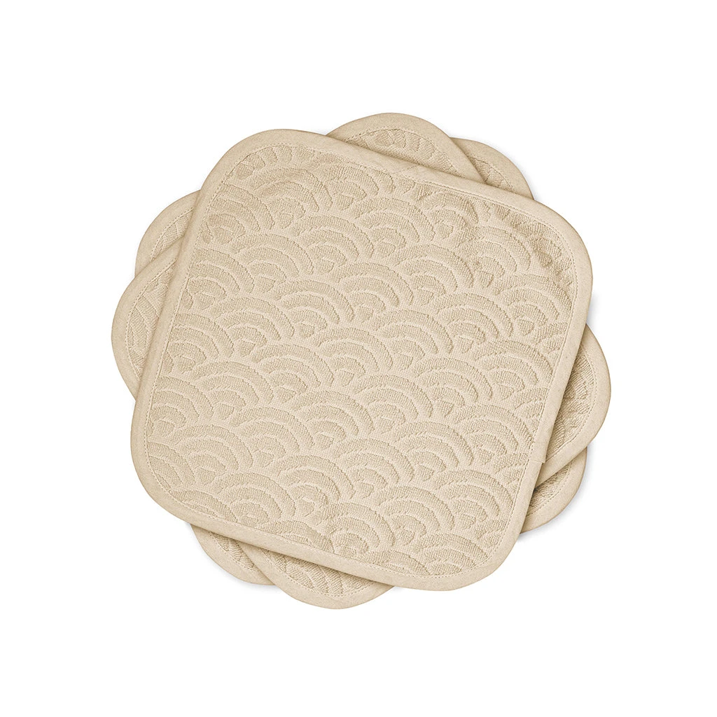Set of three soft, lush, and thick Wash Cloths made from 100% GOTS-certified organic cotton and woven in the iconic Cam Cam wave pattern. The airy wave pattern makes the Wash Cloth fast drying.